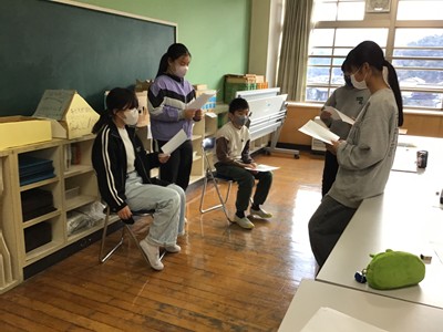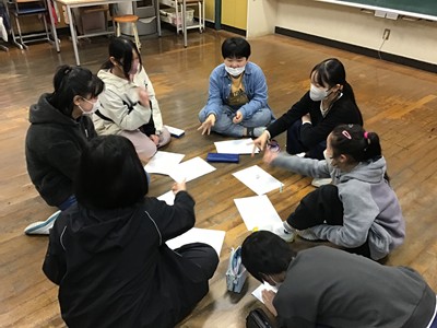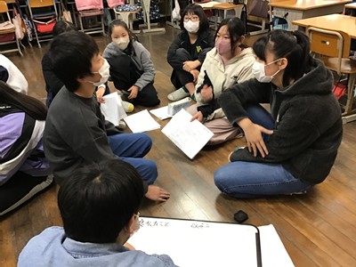 どのグループも話し合いを重ねながら工夫を凝らし、それぞれに個性あふれる会話内容をつくり上げていました。意見を出し合い、お互いに折り合いをつけながら一つの結論を導く「合意形成」は、コミュニケーション力を高める大切な学びの一つです。はじめは戸惑いも見られましたが、話し合いが進むにつれて緊張もほぐれ、活発な意見交換が行われていました。