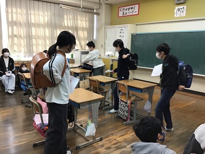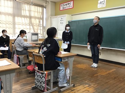 11月13日(木)、6年生は出石中学校区小中一貫教育推進事業「ようこそ後輩」に参加し、出石中学校でさまざまな体験を行いました。本年度は「6年生同士の仲間づくり」「中学校の先生による授業体験(国語・音楽)」「中学生の授業参観」「部活動見学」を中心に活動が進められました。