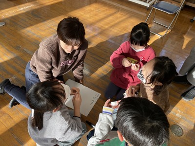子どもたちが工夫して生み出した劇は、思いがけない展開もあり、参観していた子どもたちからも驚きの声が上がっていました。友だちと協力して一つの表現を完成させる中で、達成感を味わいながら、コミュニケーション力を伸ばしていることを感じたワークショップとなりました。