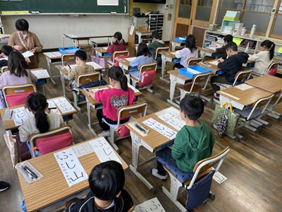 | 参観日に多くの保護者の方に見に来ていただきました。学習する子どもたちの姿はいかがだったでしょうか。新しい学年、学級になり、みんな張り切って学習できていたように思います。授業参観後には引き渡し訓練を実施し、非常事態発生時に児童・園児を確実に保護者に引き渡す訓練も実施しました。福住小学校・幼稚園では、今年度も「正しく