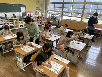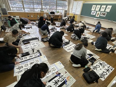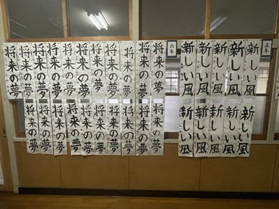 1月8日に校内の書き初め会を実施しました。子どもたちは心を静め、筆を手にして文字と向き合い、どの教室からも静かな空気が伝わってきました。黙々と書き初めに取り組む姿からは、新しい年を大切に始めようとする思いが感じられました。