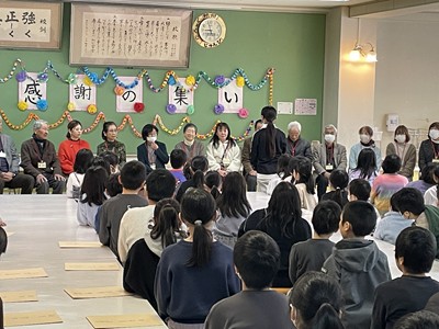 2月17日の朝、「感謝の集い(ありがとうの会)」を行いました。この会は、日頃から本校・園の子どもたちを温かく見守り、支えてくださっている地域の皆様に、感謝の気持ちをお伝えする大切な行事です。