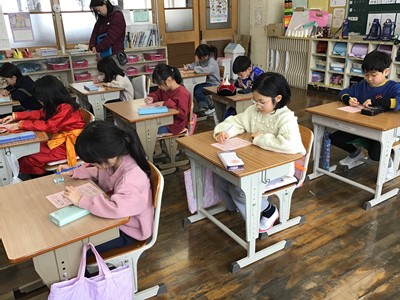 小学校では、各学級が発表形式の授業を行い、この一年で身に付けた力を披露しました。多くの保護者の皆様に見守られ、子どもたちはやや緊張しながらも、精一杯取り組む姿を見せてくれました。学校全体が温かな応援に包まれ、子どもたちの成長を共に喜ぶ一日となりました。