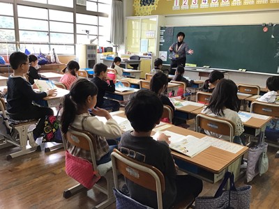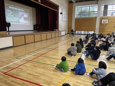 10月31日、3年生は小野地区にある古代学習館で環境体験学習を行いました。学習館では「里山」についてのお話を聞き、人が暮らす場所と野生動物の棲む場所をつなぐ大切な区域であることを学びました。