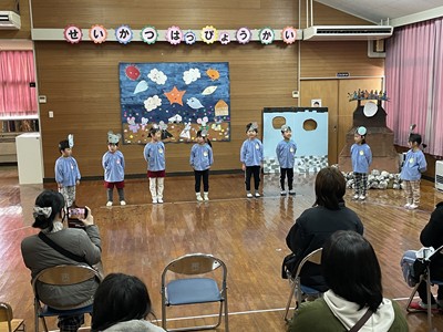 幼稚園では、さくら組の子どもたちが友だちと力を合わせ、合奏や歌、の劇を発表しました。一人一人が役割を果たし、練習の成果を十分に発揮する姿に、この一年の成長を強く感じました。