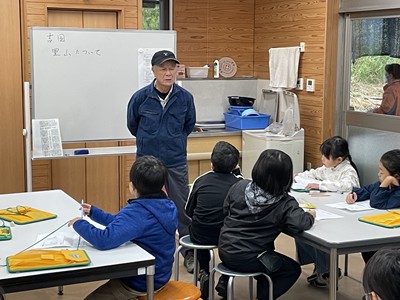 昔は薪を燃料として利用するなど、人々が生活の中で山の資源を活かす機会が多くありました。しかし、便利な道具が普及した現在では、そのような機会が減り、山の木々が十分に整備されないまま放置されることが増えています。その結果、人の世界と動物の世界の境界が曖昧になり、熊や鹿が人里に現れるケースも増えてきていることを教えていただきました。子どもたちは里山が果たす役割や、今の環境が抱える課題について、体験を通して深く理解することができました。