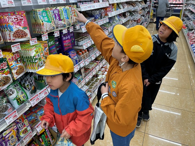 3年生の子どもたちは、社会科の学習で出石のフレッシュバザールを見学しました。お店の方から説明を聞きながら、「お客様のためにどんな工夫をしているのか」「どんな人がどのように働いているのか」などについて学びました。普段は入ることのできないお店の裏側も見せていただき、大きな冷蔵庫やバックヤードの様子に子どもたちは目を輝かせていました。また、実際に「お買い物体験」も行いました。家庭で相談してきた品物を自分で探し、セルフレジで支払いを済ませるまでを体験しました。自分の力で買い物をやりとげた子どもたちの顔には、達成感と喜びがあふれていました。