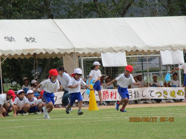 | 9月27日(土)に運動会が無事に開催されました。子どもたちは運動会のスローガンを「2025の主役はわたしたち!! 〜倍の倍のファイトで 102個の金メダル〜」として一人一人が主役になれるように全力で取り組みました。どの競技・演技にも練習してきた成果が生かされていました。その様子を紹介します。 |