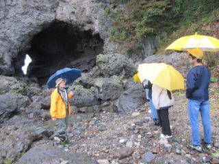 ![]() 最後に竹野海岸の見学にいきました。雨のため予定を変更し、洞門の見学を行いました。 |