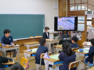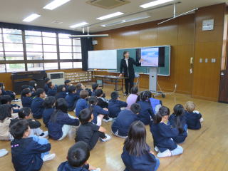 ![]() 全校集会では、21年前に実際に被災した本校職員が、その体験を子どもたちに伝えました。自宅が床上浸水にあったこと、家族で垂直避難をしたことなど話をする中で、台風の恐ろしさや家族や地域で助け合うことの大切さを教えてくれました。 |