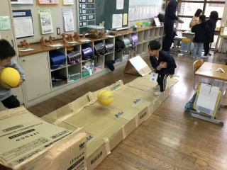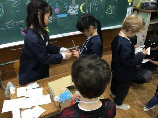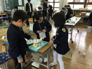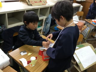 ![]() 2年生が生活で作ったおもちゃを使い、おもちゃランドを開きました。この日は、1年生を招待して楽しんでもらいました。 |