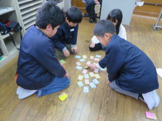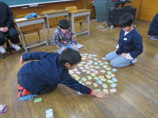 図書委員会の主催で、百人一首大会を行いました。 子どもたちは、この日に向けて百人一首を覚えたり、各学級で練習を行ったりしてきました。中には、家庭でも百人一首をしたり、休み時間に友達と取り組んだりする子もいて、大会に向けて練習を積み重ねてきました。 そして、この日はいよいよ本番です。練習の成果を発揮しようと一生懸命取り組みました。さて結果は… 子どもたちが楽しみながら日本の伝統文化に親しむことはできた有意義な行事となりました。 |