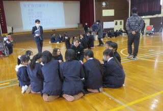 中学校の体験入学として、6年生の子どもたちが日高西中学校に行きました。音楽の授業体験、中学校での給食や掃除の体験、そして中学校1年生と6年生の交流会がありました。この会では、中学校の1日の様子や部活動についての紹介がありました。また、グループに分かれて、6年生の子どもたちが中学生に質問しながら中学校について理解を深める交流会もありました。 その後、子どもたちが楽しみにしている部活体験もあり、2つの部活を体験することができました。 |