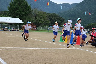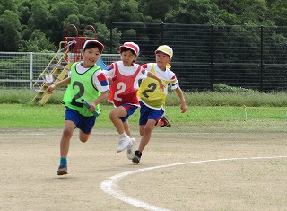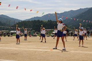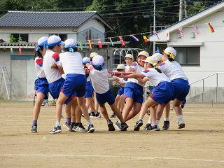 天候に恵まれ、たくさんの保護者の皆さま、地域の皆さまに見守られて運動会を開催することができました。今年のスローガンは「つなげよう みんなの絆 協力 笑顔 最後まで」でした。みんなで協力し最後まであきらめない心を大切にしました。そして、このスローガンの通り、子どもたちがそれぞれの場面で協力し合い笑顔があふれ、一人一人が輝く運動会となりました。