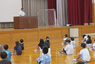いよいよ1学期が終了しました。校長より今学期は特に、あいさつと掃除を頑張っていたこと、自分のよい所を伸ばしたことについて話がありました。夏休みでは、目標などを決めて自分の力でやり通せる素敵な夏休みにしてほしいです。