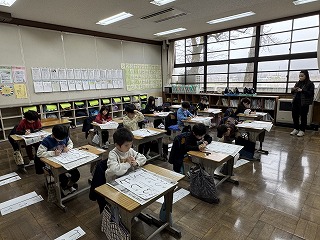書初めは、文字を丁寧に書くことだけでなく、「どんな一年にしたいか」「どんな自分になりたいか」を考える大切な機会でもあります。文字に向き合い、最後までやり抜こうとする姿から、子どもたちの成長を感じることができました。作品については、1階西廊下(児童玄関入って左側の廊下)に掲示いたしますので、2月7日(土)のオープンスクールでぜひともご覧ください。