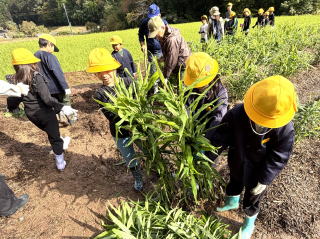 2,3年生は、市谷地区にお邪魔し、「なかすじ生姜」を収穫させていただきました。畑には爽やかな香りが漂い、これが「採れたて」というものなのだと感心しました。翌日、給食で美味しくいただきました。