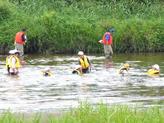 恒例行事である生き物調査に、5年生が加陽湿地へ出かけました。水辺の虫や魚たちを観察し、地域の自然の豊かさを再確認しました。特に川遊びでは河童の気分を味わい、ふるさとを満喫できたようです。