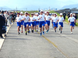 R7/11/6 マラソン大会 2学期オープンスクールの初日に、マラソン大会を開催しました。多くの保護者・地域の方に見守られ、参加児童の全員が円山川河畔コースの完走を果たし、自分を褒めてあげられたのではないかと喜んでいます。 |