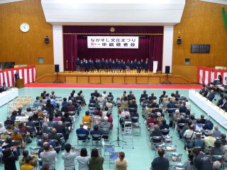 「中筋敬老会・なかすじ文化まつり」に5,6年生の多くの児童が参加し、合唱を披露しました。「もみじ」と「なかすじのさと」を力強く歌い上げ、会場に集った多くの方々から大きな拍手をいただきました。