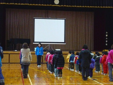 | 1月17日 避難訓練・メモリアル集会 この日は、家庭科室からの出火という想定で避難訓練を行いました。全校生が体育館へ避難してから、黙祷をし、命の尊さと思いやりの心の大切さなどを学習しました。 |