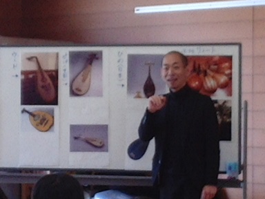 | 5月16日 訪問コンサート 高本さんに来て頂き、リュートという珍しい楽器のついて教えていただきました。優しい音色に学校中が包まれ、とっても幸せなひとときでした。 |